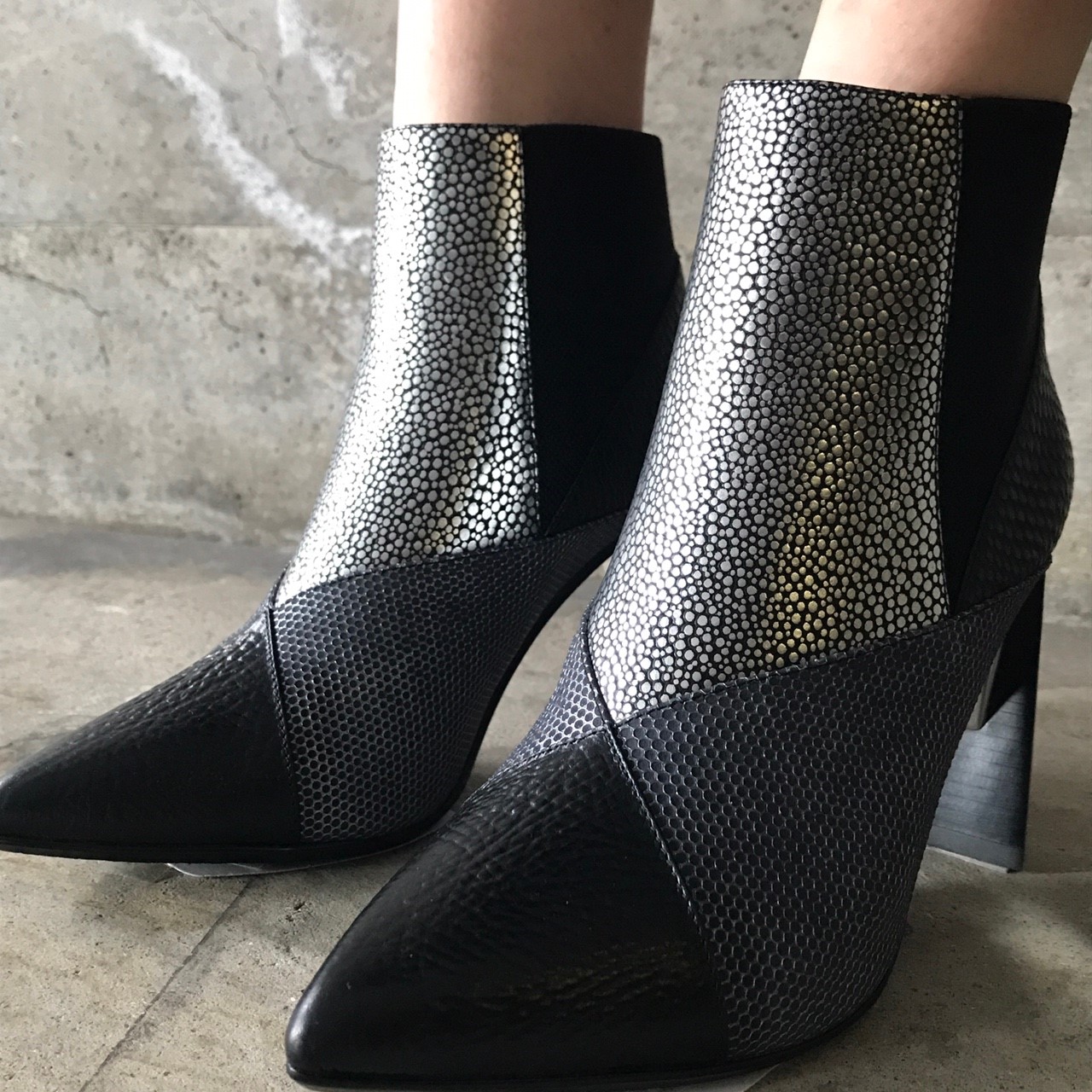 シルバーのレザーが大胆なこの冬主役級のアイテム。
