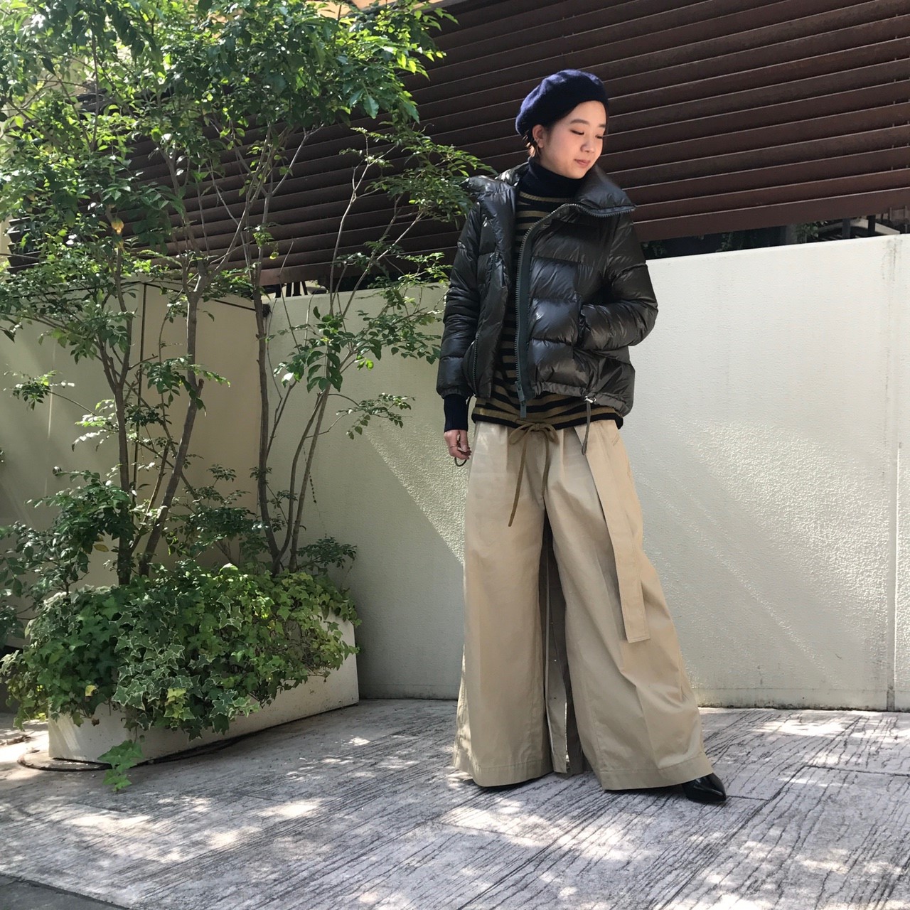 裾の絞り具合で全然形が違うので、日によって着方を変えて楽しみたいですね。