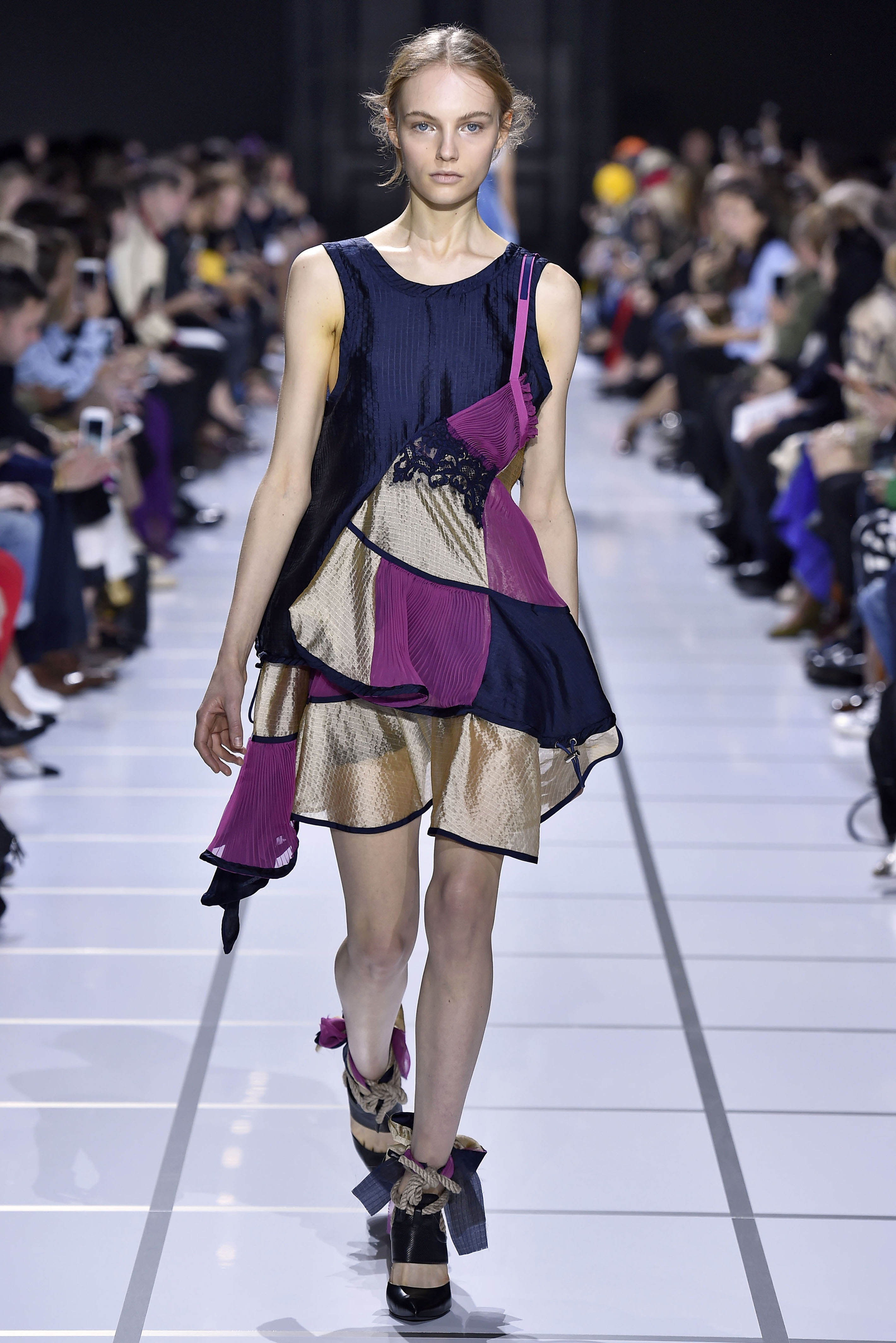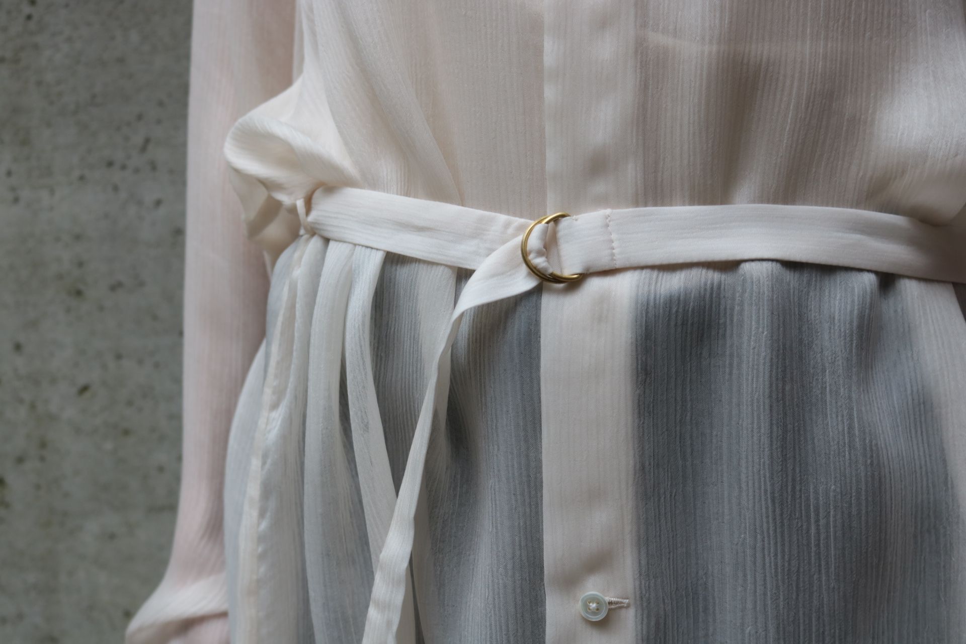 ▲シャツニットワンピース(sacai) × ラメジャージパンツ(MM⑥) × シルバーサンダル(UNITED NUDE)