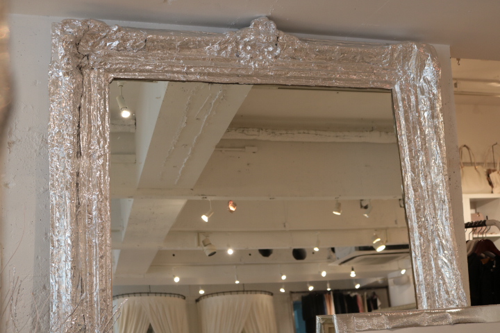 スタッフが一週間かけてシルバーで什器をくるんだ力作。