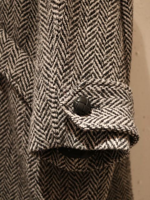 足跡の階段を上ると入り口ディスプレイは迫力のアーティザナルのトレンチコート!と思いきや、