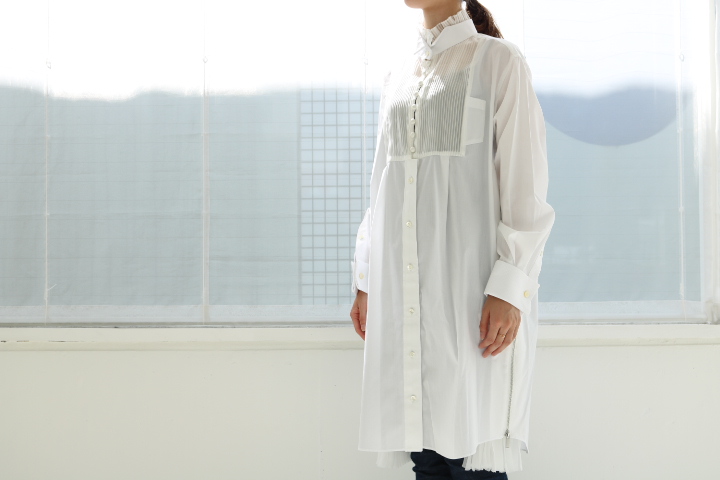 スタンドネックのデザインで、バックにはジッパーが付いております。