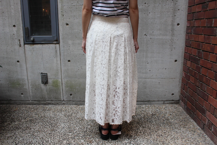 ▲巻きスカートで内側にボタンが1つつき、外にはベルトが付き調整が可能。