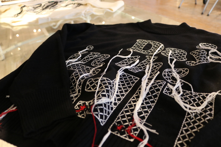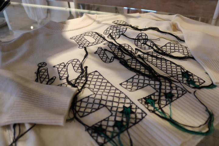 ▲メインコレクションのテーマである『A day in the life』が大胆に刺繍されたセーター。