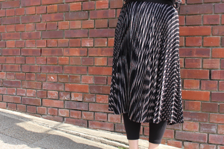 ウエストに斜めに入る切り替えはウエストをすっきりと細く見せてくれます。