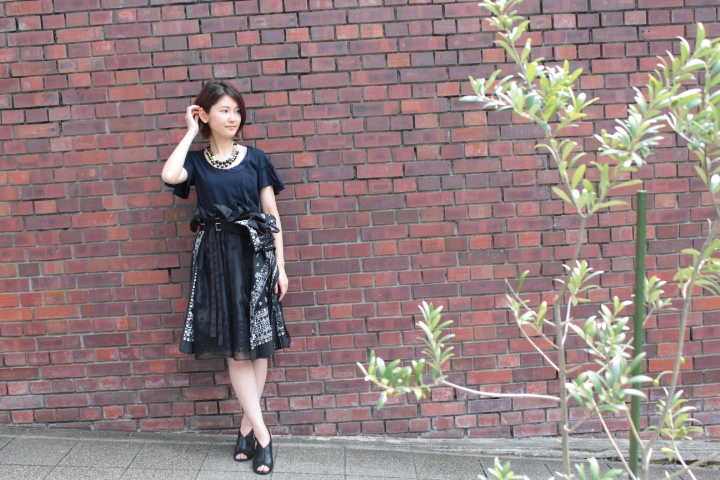 オーガンジーの布が出て来るデザインが涼し気にも見える夏のタイトスカートです。